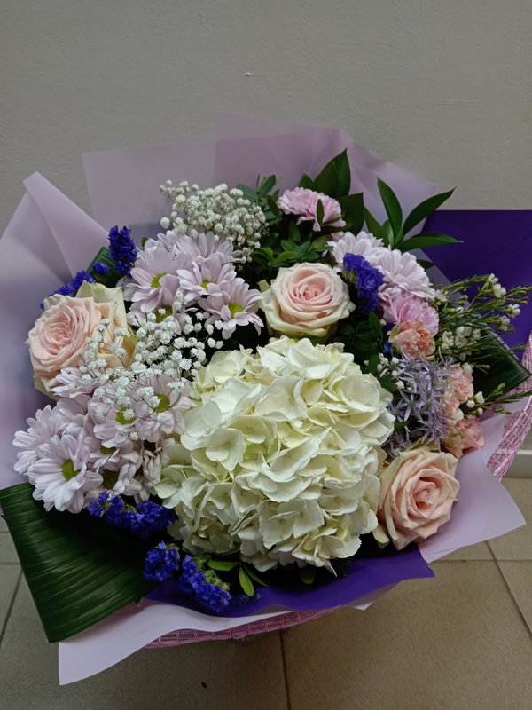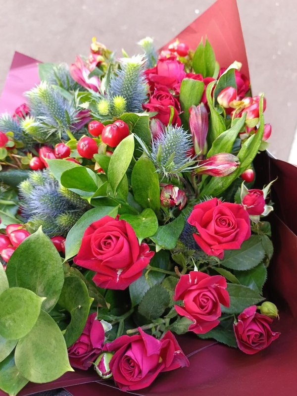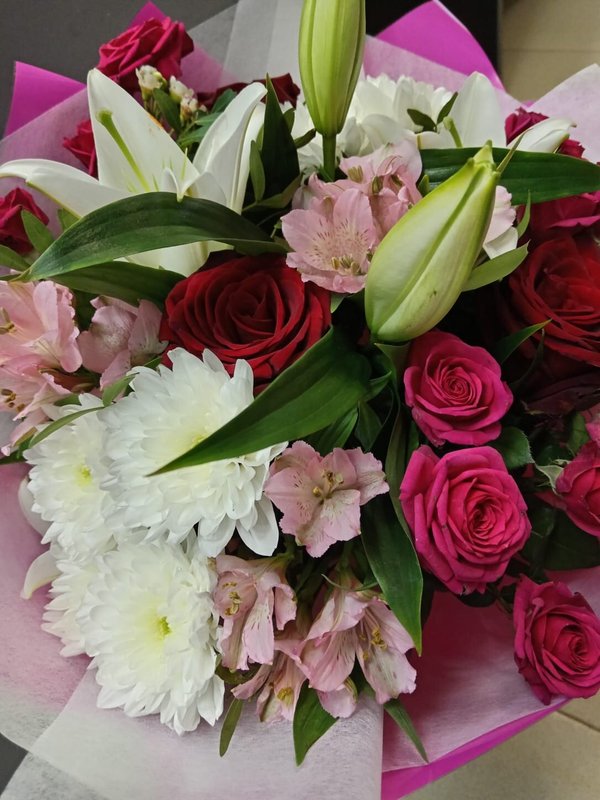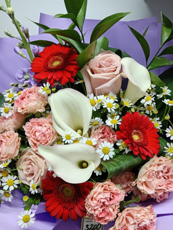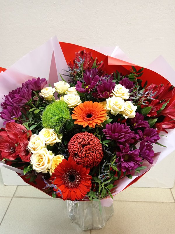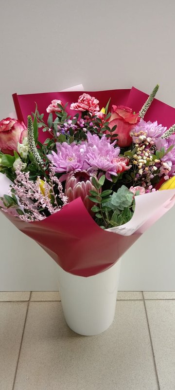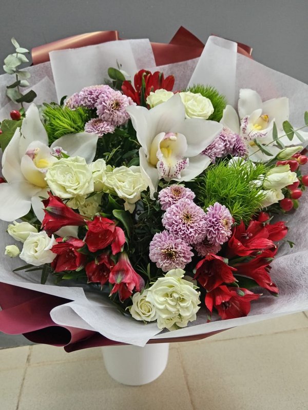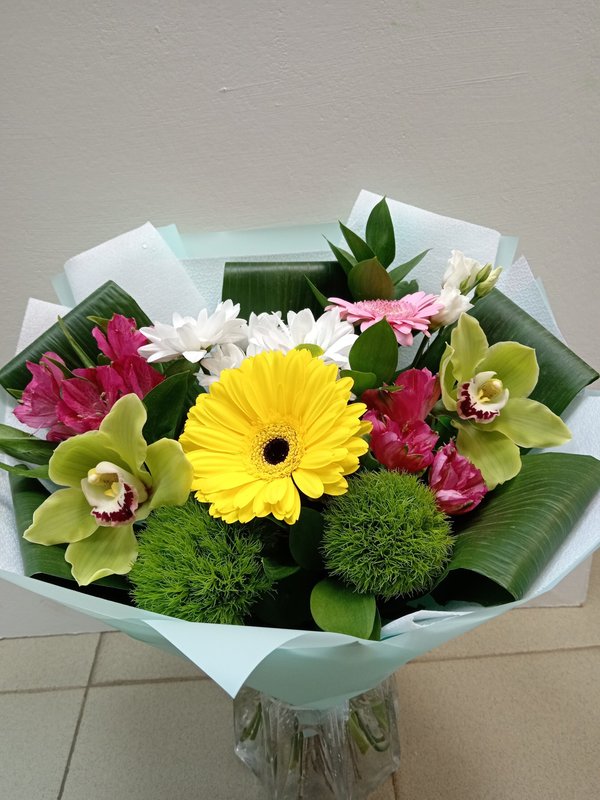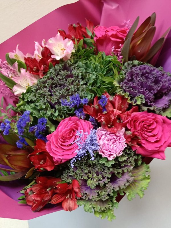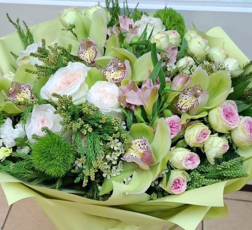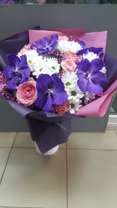В магазине получил хорошее и дружелюбное отношение флориста, он сразу понял, что я хочу и сразу довольно быстро оформил букет. Букет на день рождения покупал, принёс фото и мне собрали что-то похожее из разных цветов. Каких-то растений не было в наличии, но флорист их заменил на другие и букет получился не менее красивым.