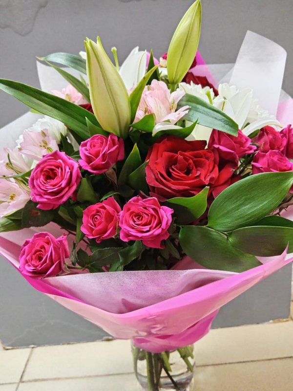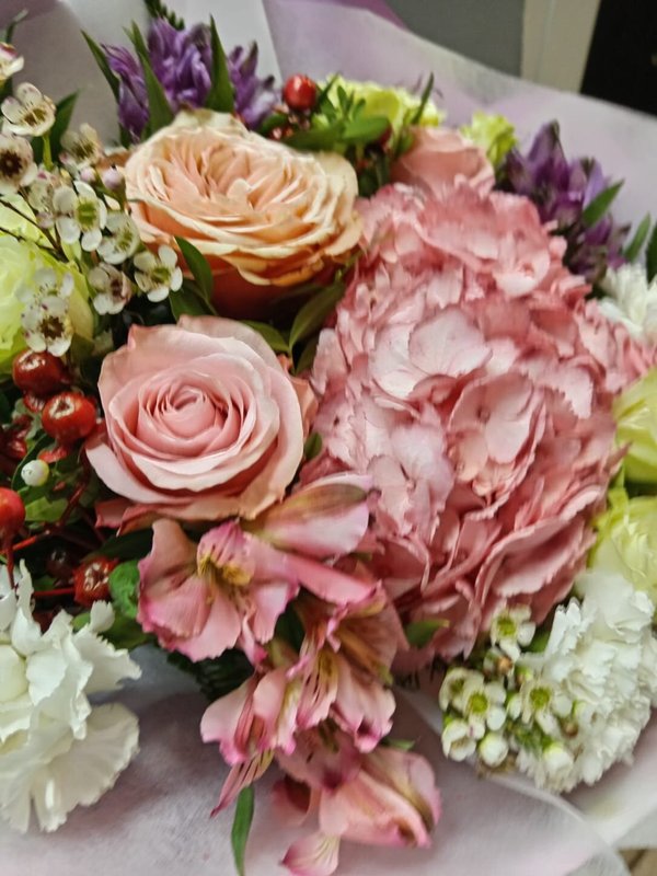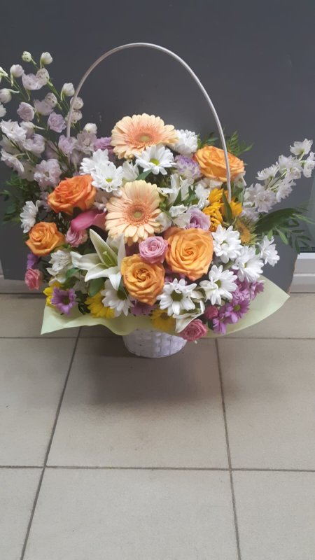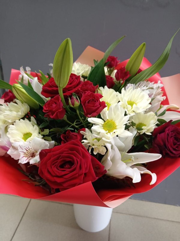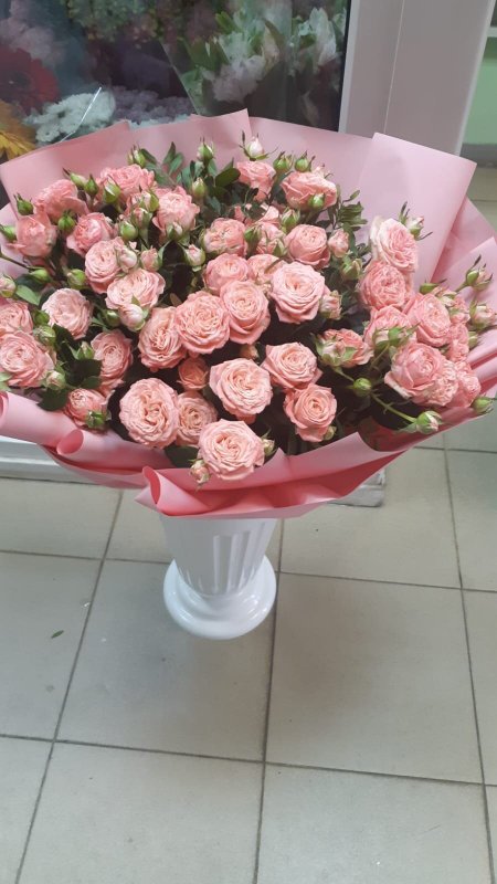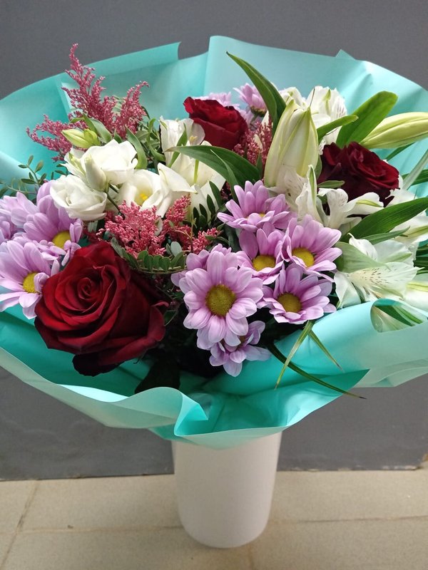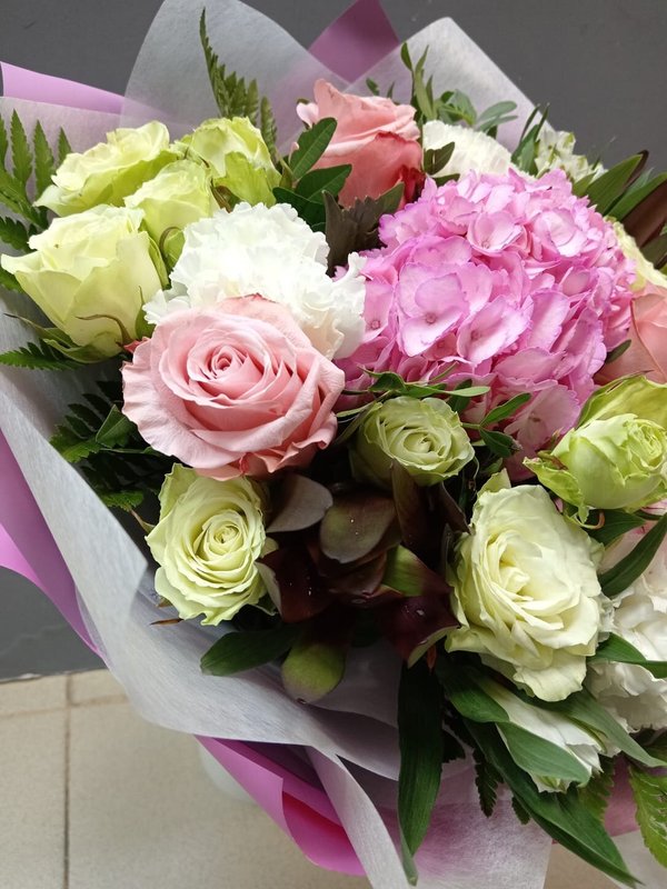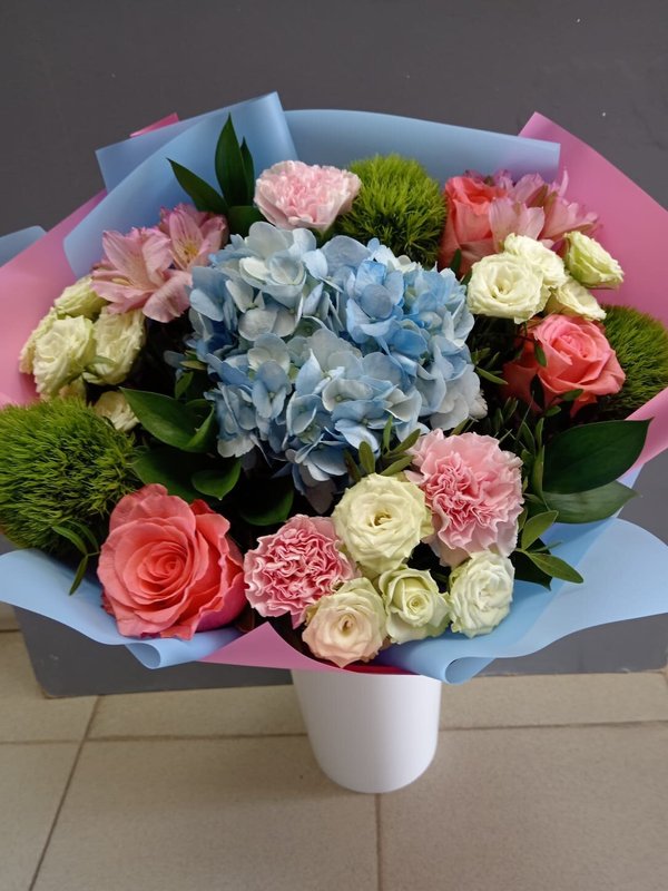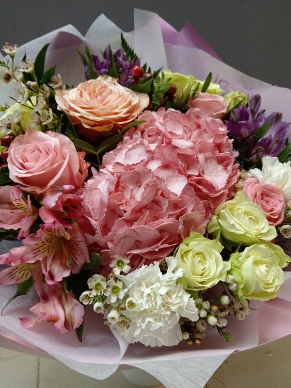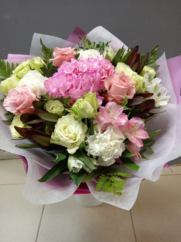 В магазине получил хорошее и дружелюбное отношение флориста, он сразу понял, что я хочу и сразу довольно быстро оформил букет. Букет на день рождения покупал, принёс фото и мне собрали что-то похожее из разных цветов. Каких-то растений не было в наличии, но флорист их заменил на другие и букет получился не менее красивым.