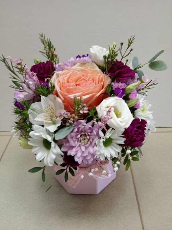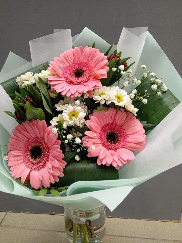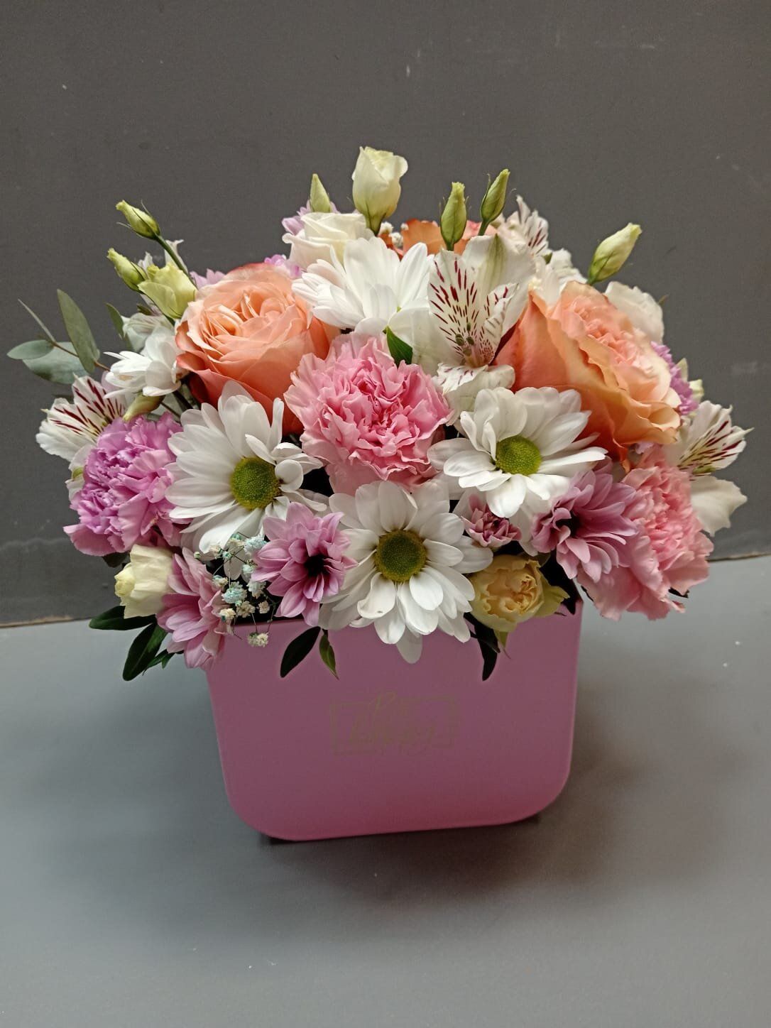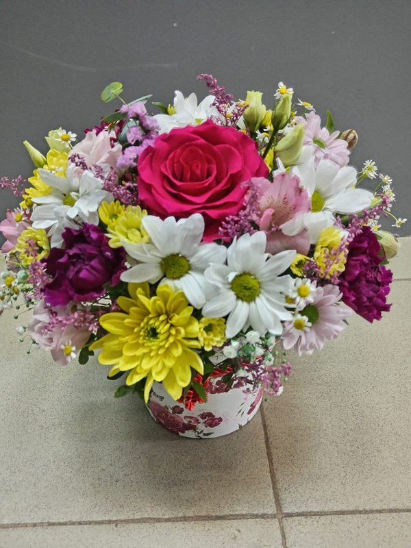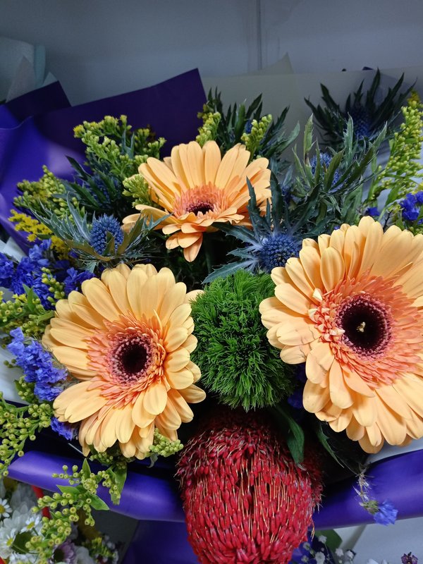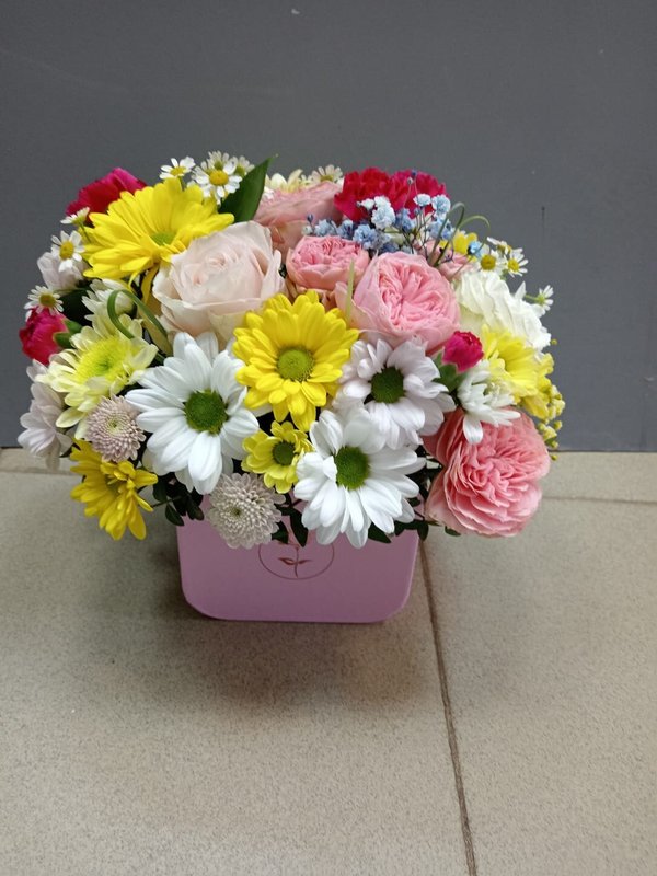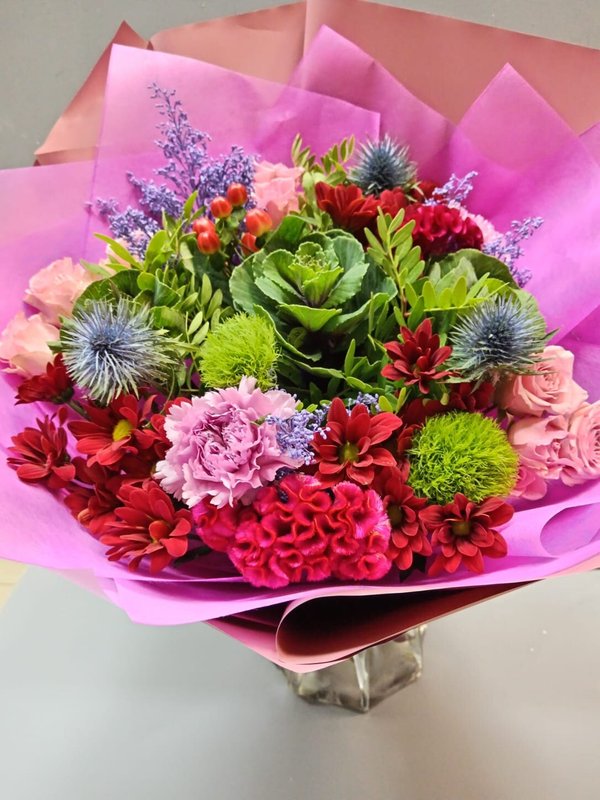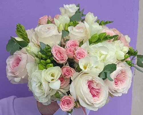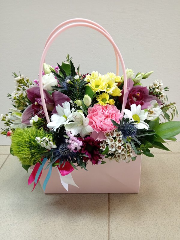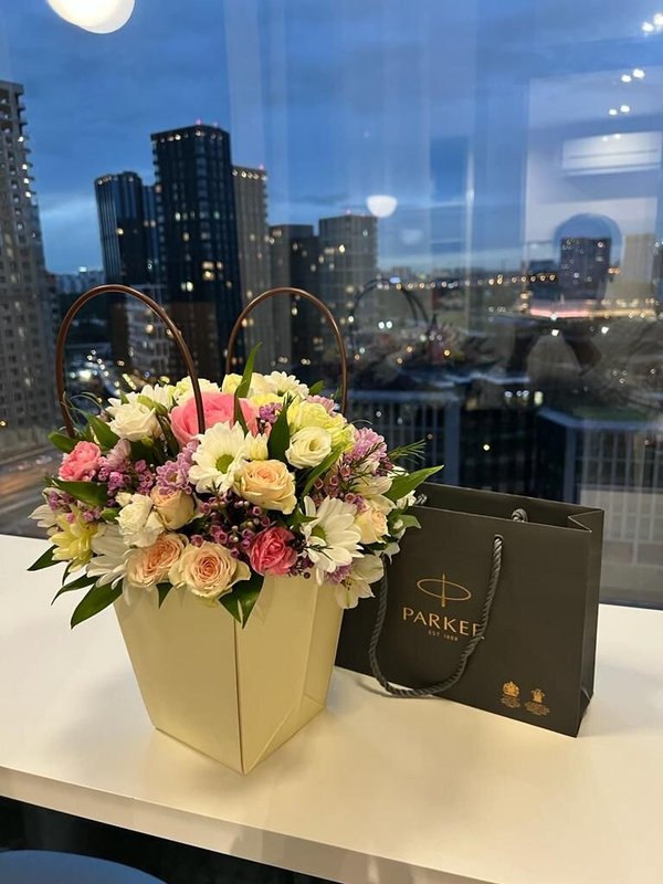 В магазине получил хорошее и дружелюбное отношение флориста, он сразу понял, что я хочу и сразу довольно быстро оформил букет. Букет на день рождения покупал, принёс фото и мне собрали что-то похожее из разных цветов. Каких-то растений не было в наличии, но флорист их заменил на другие и букет получился не менее красивым.